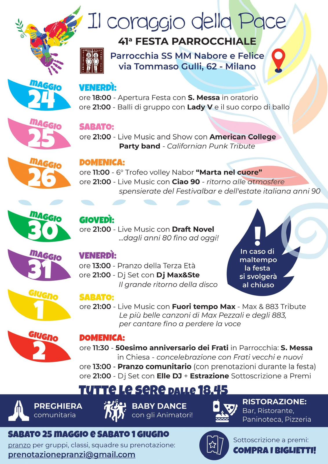 Festa Parrocchiale 2024 – “Il coraggio della pace” Pubblicato giorno 9 maggio 2024 - In home page, Senza categoria