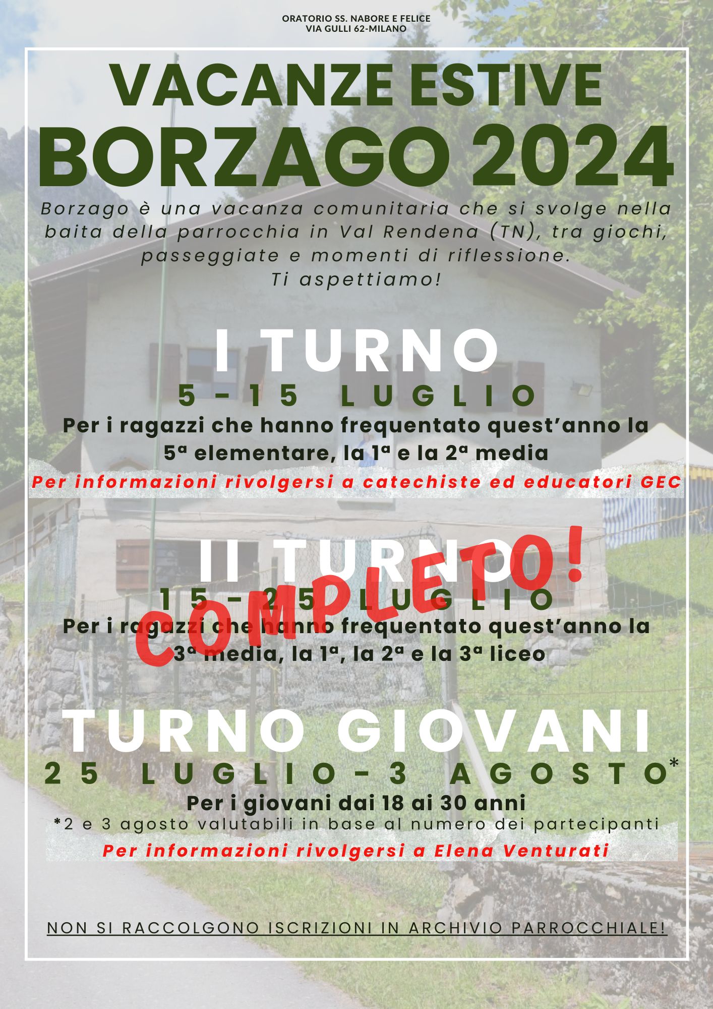 Anche quest’anno la nostra parrocchia propone l’esperienza delle vacanze comunitarie a Borzago (TN).